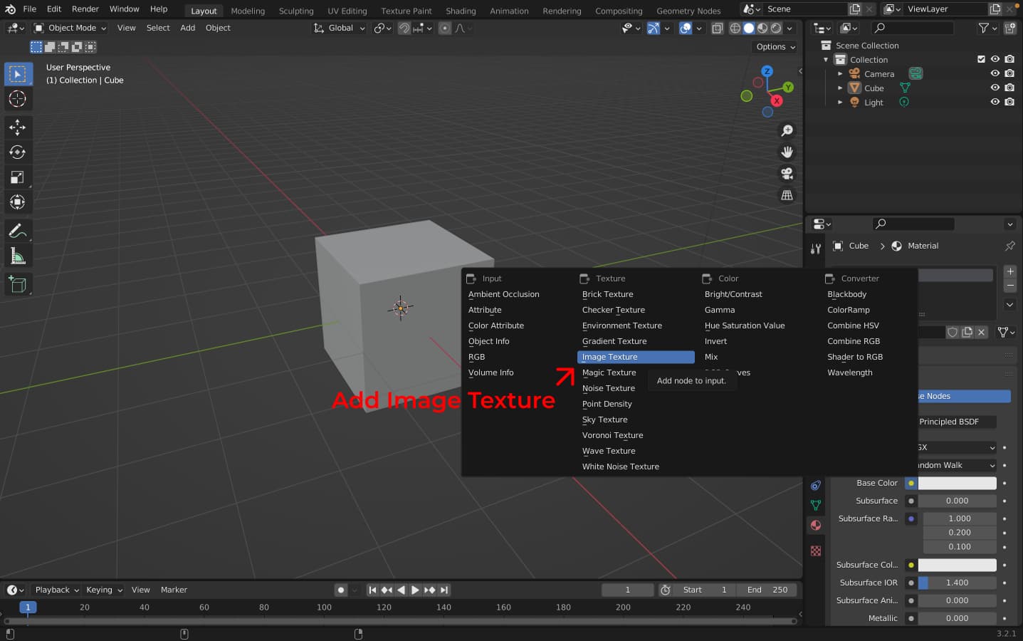 Step 2: Add “Image Texture”. You should see new menu options under Base Color.